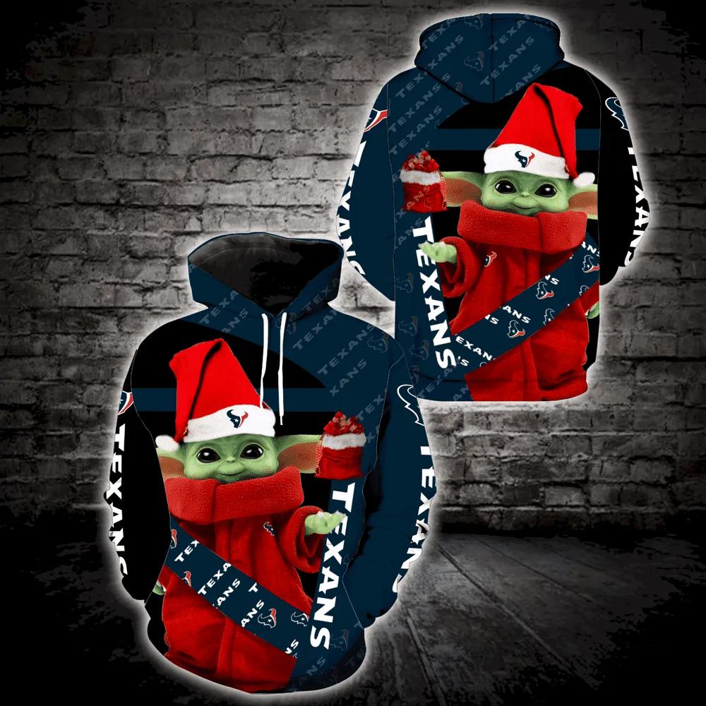 Baby Yoda Wearing Clothes Christmas Houston Texans 3D Hoodie, NFL Hoodie