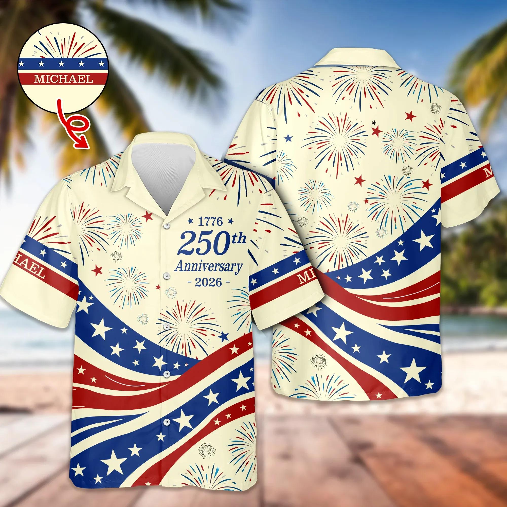 Custom Name USA 250th Anniversary 1776-2026 Hawaii Shirt – 4th of July Patriotic Gift, 250th Anniversary Gift