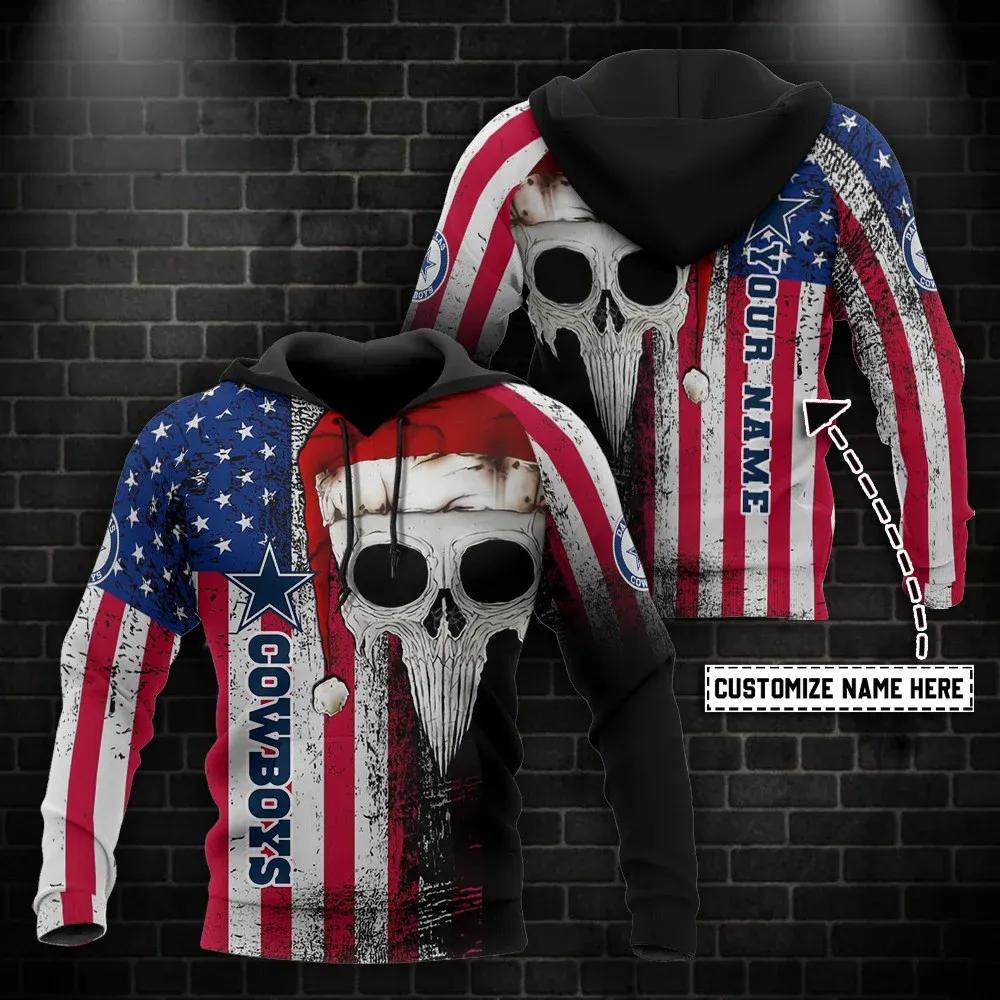 Dallas Cowboys American Flag Skull Personalized 3D Hoodie, NFL Hoodie
