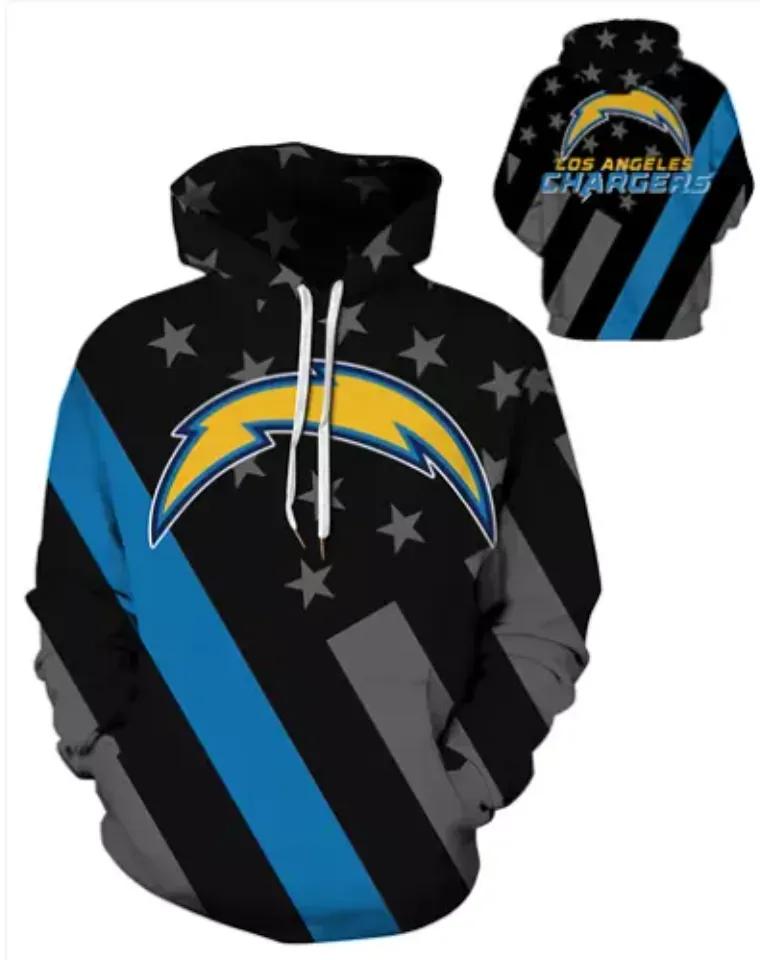 Los Angeles Chargers American Flag Black 3D Hoodie, NFL Hoodie